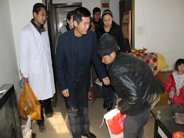 活動在社區(qū)辦提供的四戶家庭情況較為困難的業(yè)主家中進行。主要是對患病業(yè)主進行義務就診,講解冬季預防疾病的常識,發(fā)放慰問物品。