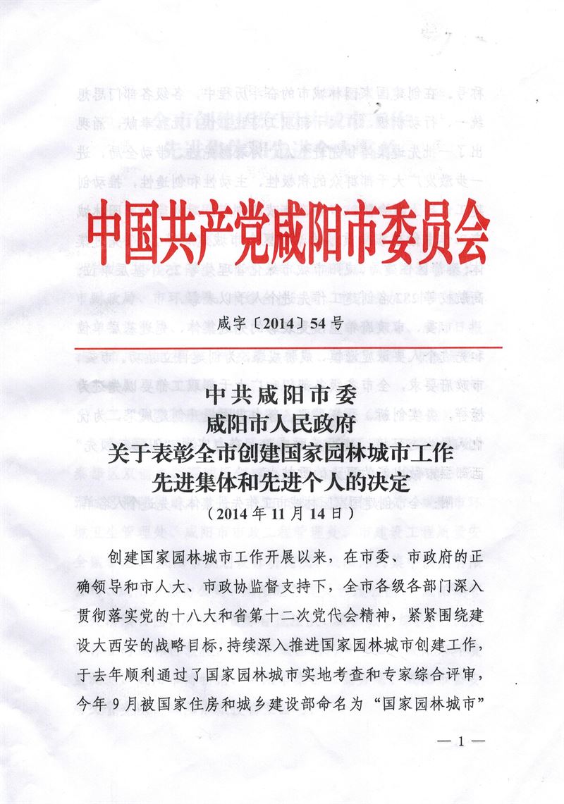 “國家園林城市工作先進(jìn)基層單位”稱號